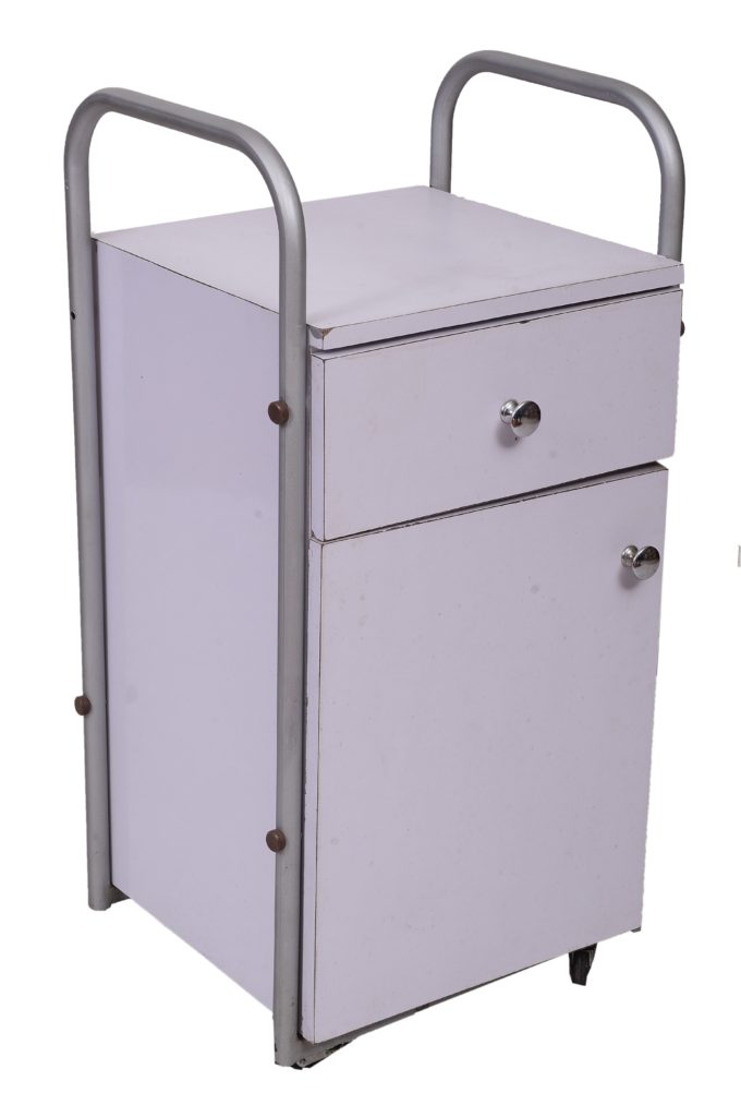 The hospital bedside cabinet features a stackable storage unit. It has a coverage door and a drawer at the top.